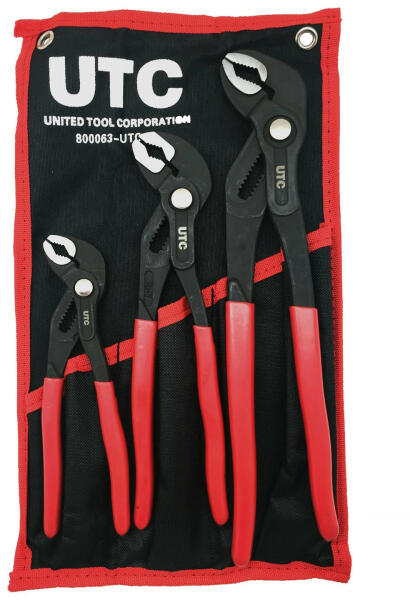 United Tools Corporation Vízpumpa fogó záró funkcióval Tulajdonságok: - 3 méretű vízpumpa fogó - 180 mm (7") - 240 mm (10") - 300 mm (12") Az összes fogó zárható funkcióval lett kiegészítve Méret: 335x78x44 mm Súly:1,160 kg