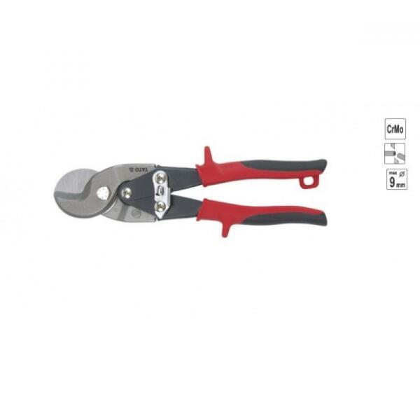 A YATO kábelvágó olló használatát megkönnyíti a kedvező fogás, a kis súly és az ergonomikus markolat. A kábelvágó olló hossza 230 mm, kábelvágás maximum 9 mm-ig. Éles élének köszönhetően a vágószerszám tökéletes pontossággal vág, minimális erőkifejtés mellett. Méret: L=230 mm Vágás: maximum 9 mm Vágóélek keménysége: HRC58-61 Anyaga: króm-molibdén (CrMo)