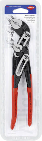 Fogókészletek Katalógus szám cikkszám tartalma szállításkor: 1 db 180 mm-es vízpumpafogó, 1 db 250 mm-es vízpumpafogó. Szállítási terjedelem: 1 x 88 01 180 KNIPEX Alligator Vízszivattyú fogó, 1 x 88 01 250 KNIPEX Alligator Vízszivattyú fogó,