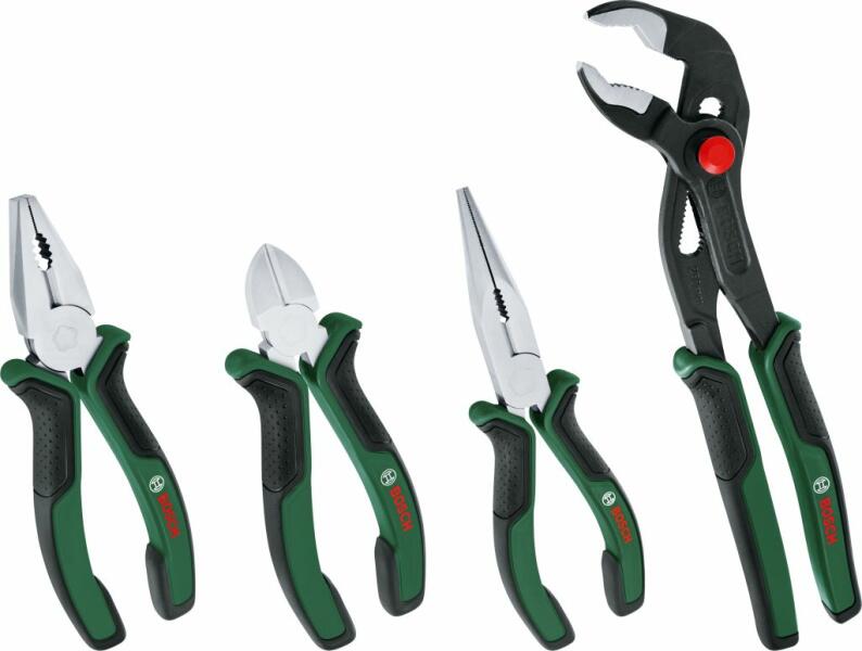 Bosch 4 részes fogókészlet (1600A02W7K) Kiváló minőségű, nagy pontosságú és tartós fogók különböző nehéz feladatokhoz. Felhasználói előnyök: Fokozott pontosságra és sokoldalúságra tervezve. Kiváló minőségű, tartós szerszámok kemény szénacélból. Rozsdamentes a króm-nikkel bevonatú felületnek köszönhetően. Egyszerű használat az ergonomikus külső és bel
