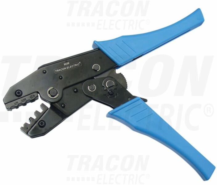 Tracon érvéghüvelyfogó adatai Univerzális érvéghüvelyprés szigeteletlen, szigetelt, egyes és iker érvéghüvelyekhez Az érvéghüvely préselési tartomány: 6-16 mm2 fogó hosszúság: 230 mm két oldalon szorító préselőpofák racsnis mechanizmus, nagy szorítóerő A présszerszám tömege: 600 g
