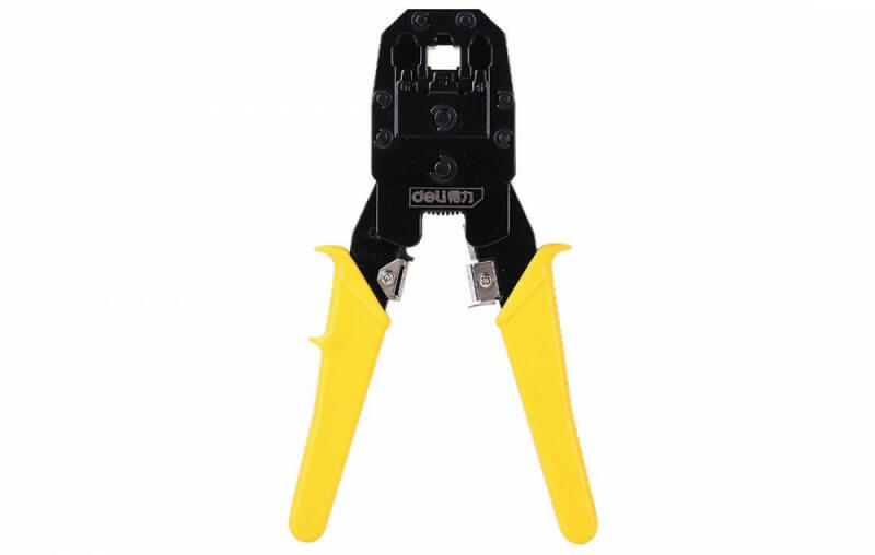 Deli Tools EDL2468 Krimpelő fogó Ethernet csatlakozókhoz 4/6 / 8P, RJ45 / RJ14 / RJ12 / RJ9 (sárga) Ethernet krimper Deli EDL2468 Az Ethernet krimpelő nélkülözhetetlen eszköz minden telepítő számára, aki napi kapcsolatban van a telekommunikációs hálózatokkal. A sárga Deli márkájú szerszám lehetővé teszi az RJ45 dugók biztonságos krimpelését. Ezzel a készülékkel tetsz
