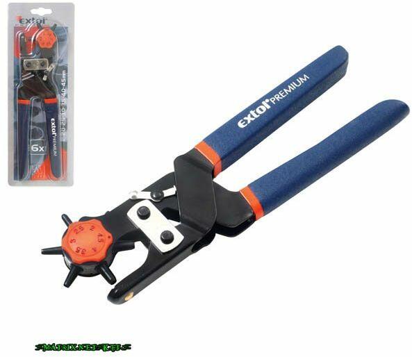Az Extol Premium 240 mm hosszú bőrlyukasztó fogó erős, speciális acél fogótesttel, forgatható kerékkel, 6 különböző méretű lyukasztó tüskével: 2; 2,5; 3; 3,5; 4; 4,5 mm. A bőrlyukasztó t extil, bőr, karton, rétegelt lemez, alulemez lyukasztására kiválóan alkalmas. Az ergonomikusan kialakított, gumírozott szerszámnyél biztosítja a könnyű és egyszerű munkavégzés