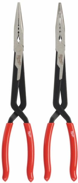 A készlet tartalma: Hosszúcsőrű fogó egyenes, Hosszúcsőrű fogó 45°-os A kényelmes fogantyúk mélyreható kereszt kialakítása maximalizálja a hozzáférést a szűk területeken. Többfunkciós fogózónák széles körű anyagok fogásához, mint például csavarok, kábelek és kerek alkatrészek. A kényelmes fogantyúk mélyreható kereszt kialakítása maximalizálja a hozzáfé
