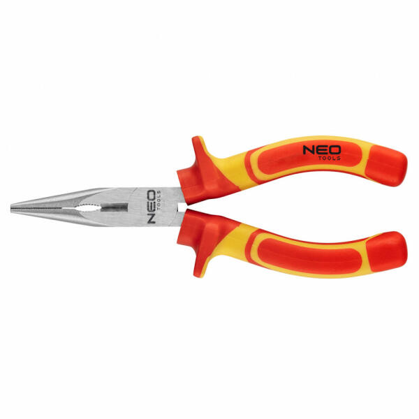 NEO hosszúcsőrű egyenes fogó, 1000 V. Max. 1000 V feszültség alatti használatra minősített. A kiváló minőségű, indukciósan edzett króm-vanádium acél pofák biztosítják az erős fogást és a hatékony vágást. Az ergonómikus bimateriál markolat növeli a használat komfortját. A termék megbízhatóságát bizonyítja a 25 éves jótállás. A NEO márka a professzionális