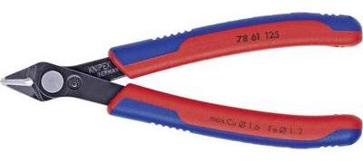 Nagy teherbírású, fényezett speciális szerszámacélból készült, a vágóélek indukcióval edzettek 64 HRC-re Precíziósan csiszolt vágóélek hajlítás nélkül a legfinomabb, például elektronikai vagy finommechanikai vezetékek pontos és süllyesztett vágásához A precíz formájú csúcsok a szomszédos vezetékeket is átvágják Ø 0,2 mm-től Nyitórugóval és nyitáskorlá