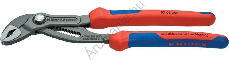 KNIPEX Cobra® Hightech-vízpumpafogó A finombeállítás nyomógombbal A finombeállítás egy kézzel közvetlenül a munkadarabon elvégezhető. Jellemzők: átdugott csukló: nagy stabilitás a kettős vezetés következtében · kedvező emelőhatás: optimális erőátvitel · a becsípődés elleni védelem megakadályozza a zúzódási sérüléseket · egykezes állítás · önszorító