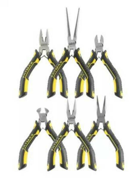 STANLEY FATMAX 6 RÉSZES MINI FOGÓ KÉSZLET Precíziós fogó készlet a szűk helyeken történő munkavégzéshez Oldalcsípő fogó (110mm) Kombinált fogó (120mm) Hosszúcsőrű fogó (140mm) Homlokcsípő fogó (110mm) Hajlított csőrű fogó (120mm) Lapos kombinált fogó (120mm) Bimateriális csúszásmentes nyél Nyító rugó A Stanleyről... STANLEY büszke kiváló hírnevére. Célu
