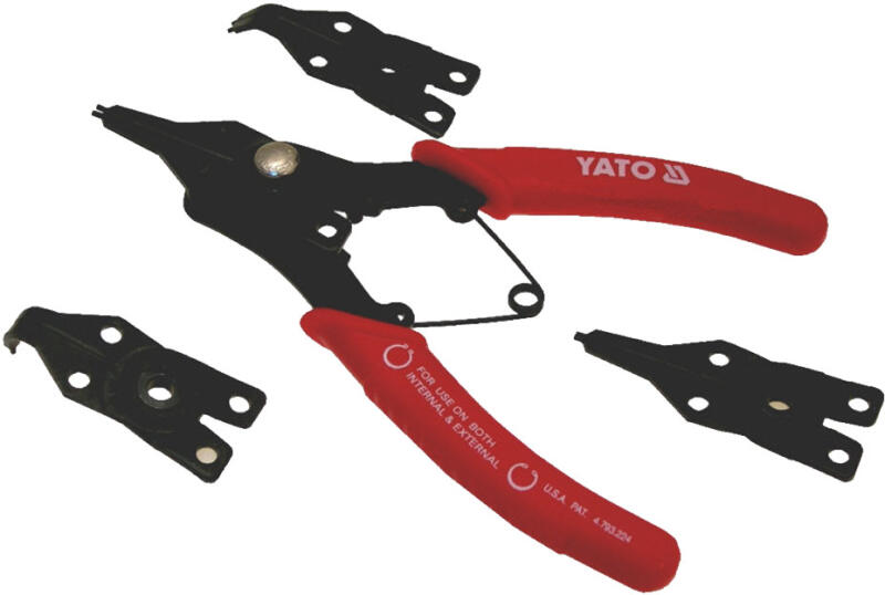 A YATO seeger fogó 5 részes készlete kiváló minőségű kéziszerszáma 4 db cserélhető fejjel: seeger gyűrűk behelyezésére-kivételére, azaz a biztosítógyűrűk illesztésére szolgáló szerszám. Kiváló minőségű króm-vanádium ötvözetű acélból készül. Kopás elleni edzés a csúcsokon, speciális felületkezelés, mely magas korrózióvédelmet biztosít, egyedüláll