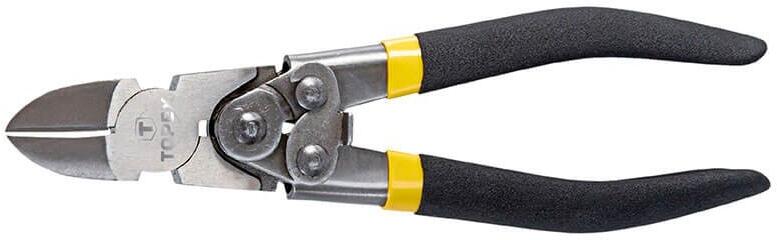 TOPEX csuklós oldalcsípőfogó, 180 mm hosszú. A csukló megnöveli a kifejtett erőt. Edzett acélból készült, a vágófelületek ezen kívül indukciós edzést is kaptak. Az ergonómikus, csúszásmentes anyaggal bevont markolat biztosítja a kényelmet és a biztonságot a munkavégzés során. A termék tökéletesen illeszkedik a kéz alakjához. A TOPEX márka ezermestereknek készül