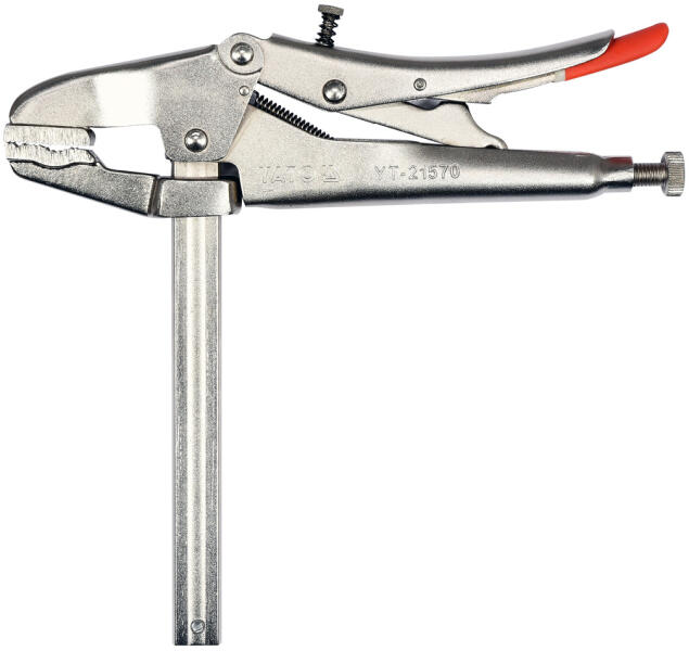 Szorító rudas önzáró fogó 260 mm-es, gumírozot nyéllel, 40CrV acélból. Gyorsan állítható pofák, amelyek jelentősen felgyorsítják és megkönnyítik a különböző vastagságú és magasságú elemek megfogását Lehetővé teszi a munkát a 0 ~ 150 mm tartományban A pofák speciálisan profilozott formája megkönnyíti a kis elemek vagy csövek körüli manőverezést Az edzett