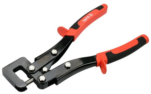Speciális fogó a perforációhoz és a lapok összekapcsolásához. Fogók 2,5 mm vastag acéllemezből. GR15 acélból készült a lyukasztócsap. Hossza: 280 mm Befogható anyagvastagság: 0,5-0,8 mm. Anyaga: Al-Ti ötvözetű pofa. YATO Profilegyesítő fogó (gipszkartonozáshoz) 280 mm d= 0,5-0,8 - Speciális fogó a perforációhoz és a lapok összekapcsolásához. - A 0,8 mm vastagságú