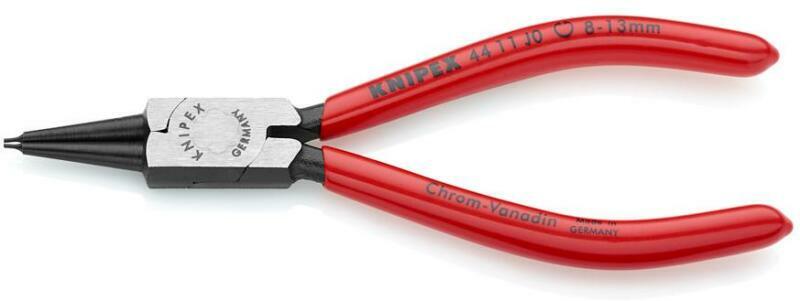 Rögzítőgyűrű fogó furatokba, belső gyűrűkhöz Jellemzők: Rögzítőgyűrűk elhelyezésére furatokban az Ø 8 - 140 mm-es tartományban · Erős szerkezet, kovácsolva · Lecsúszást gátló, stabil hegyek · A fogó teste és a hegyei: króm vanádium acélból, kovácsolva, olajban edzve készültek · A fogó feketére felületkezelve · Markolat műanyaggal bevonva. Műszaki adatok