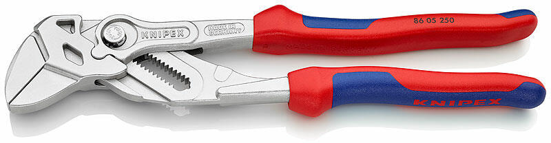 Vízpumpa fogó és csavarkulcs egyetlen szerszámban 250 mm 1 3/4", Knipex 86 05 250 Vízpumpa fogó és csavarkulcs egyetlen szerszámban 250 mm 1 3/4", Knipex 86 05 250 Cserélje ki a villáskulcskészletet, metrikus és angolszász Sima állkapocs a felülettel készített szerelvények gyengéd összeszereléséhez - dolgozzon közvetlenül a krómmal! Állítható csavarozó szerszám Ideál