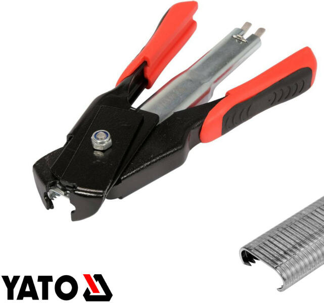 Drótok és kerítéshálók kapcsokkal történő rögzítésére tervezett fogó. Horganyzott acélból készült Fogantyú PP és TPR műanyagból Hossza: 190 mm Tár 50 kapocs számára A meghúzott kapcsok átmérője: 4-6 mm Tűzőkapocs-szélesség: 20 mm 100 db korrózióálló acél C kapcsot tartalmaz Hozzá illő kapcsok cikkszáma: YT-51471 TECHNIKAI ADATOK Anyag Acél Alkalmazás Ép