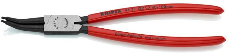 Fogó a belső gyűrűk rögzítéséhez, 45°-os szögben lekerekítve Kivitel: DIN 5256 C és DIN 5256 D szerint, de 45°-os szögben lekerekített. Króm-vanádium acélból kovácsolt, olajban edzett és edzett, polírozott fej. Csúszáscsillapítás a hegyek speciális geometriájának köszönhetően. Fogantyúk műanyag kezeléssel. Alkalmazás: Belső rögzítőgyűrűk felszereléséhez.