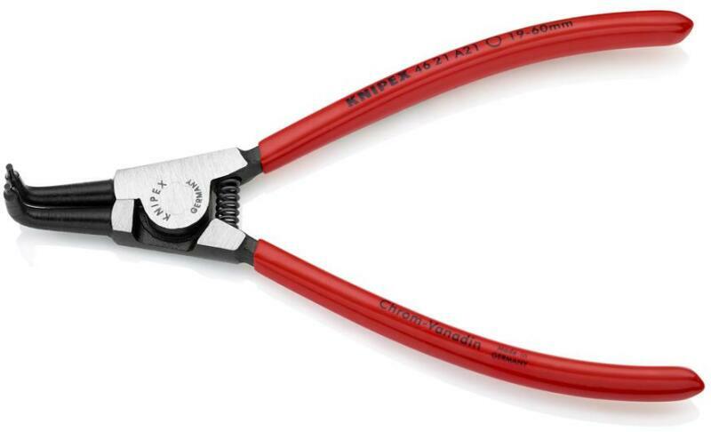 biztosítógyűrűfogó tengelyek külső gyűrűihez Jellemzők: biztosítógyűrűknek Ø 3 - 140 mm átmérőjű tengelyre való felszerelésére · erőteljes alak, kovácsolt · lecsúszásgátló, stabil hegyek · fogótest és hegyek: króm-vanádium-elektroacél, kovácsolt és olajban edzett. Műszaki adatok: Alkalmas tengelyátmérők: 19-60 mm · Anyag: Króm-vanádium acél · Gyártó