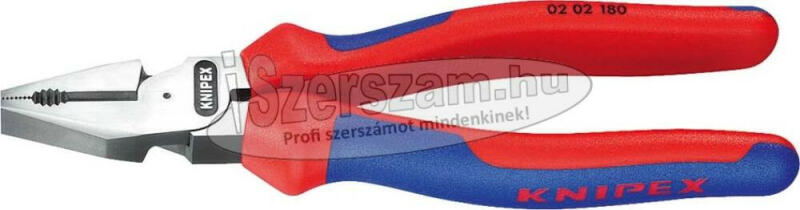 Kombinált fogó, erős, KNIPEX 02 02 Jellemzők: Mindenfajta huzal - beleértve a zongorahuzalt is - nagy precizitású vágásához · Nagy erőáttétellel, ebből adódóan a hagyományos kombinált fogókhoz képest 35%-os az erőráfordítás megtakarítás. · Vastagabb kábelekhez hosszú vágóéllel és a legnehezebb igénybevételnek ellenálló, kopásálló pofákkal. · Króm vanádi