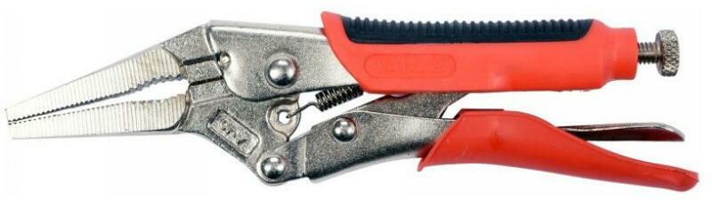 Jellemzők Professzionális Önzáró (Patent) Fogó Hosszúcsőrű Pofával Cr-Va (Chrome-Vanadium) acél pofa Ni (Nikkel) bevonattal Precíziós megmunkálás Csúszásmentes, ergonómikus nyél Törés garancia (bővebben a minőségről és a garanciáról) Méret: 165 mm Súly: 180 gr