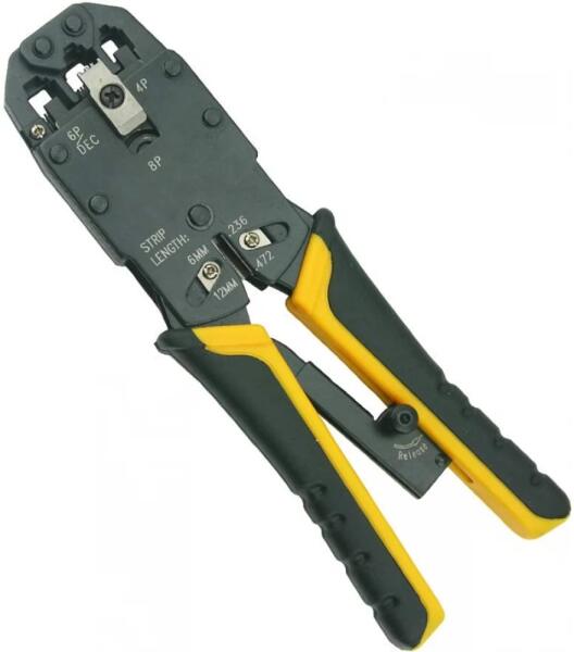 Multifunkcionális krimpelö fogó. - Kompatibilis csatlakozók: RJ45/12/11,4P4C, 4P2C dugó, 6P6C
