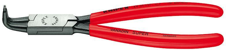 823642 Seegergyűrű fogók belső gyűrűkhöz (furatok) 300 mm, Ø 85-140 mm, 90°-ban hajlított, Knipex 46 21 J41 iztosítógyűrűfogó furatok belső gyűrűihez Jellemzők biztosítógyűrűknek Ø 8 - 140 mm átmérőjű furatba való beszerelésére erőteljes alak, kovácsolt lecsúszásgátló, stabil hegyek fogótest és hegyek: króm-vanádium-elektroacél, kovácsolt és olajban edze