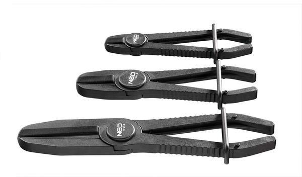 A NEO műanyag önzáró fogó szett 3db strapabíró műanyagból készült önzáró fogót tartalmaz. Az egyes fogók befogási tartományai: 1/4"-tól 3/4"-ig, 1/2"-tól 5/4"-ig illetve 3/4"-tól 9/4"-ig. Könnyűek, nem korrodálódnak, élettartamuk igen hosszú. A NEO márka a professzionális igényeket is kielégíti. Önzáró fogó, műanyag, 3 db