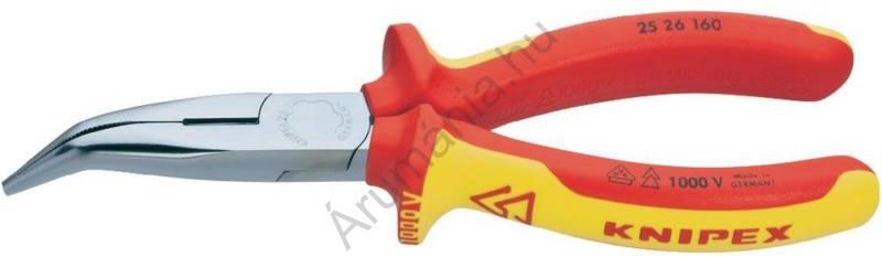 VDE Gólyacsőr fogó 25 26 160 Jellemzők: Kerekített lapos pofákkal és fogazott markolattal · Lágy és félkemény huzalokhoz · Speciális szerszám acélból, olaj edzésű illetve az élek indukciós edzésűek · A becsípés elleni védelem megakadályozza a sérülést · A fogantyúk PVC-vel vannak bevonva · Krómozott fogófej. Műszaki adatok: Alkalmazás (fogók): VDE · Anyag: K