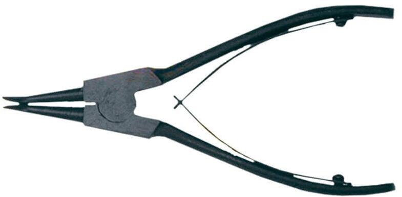 45°-ban megtört fejű biztosítógyűrűfogó tengelyek külső gyűrűihez Jellemzők: Lecsúszásgátló, stabil hegyek · Erőteljes alak, kovácsolt · Biztosítógyűrűknek Ø 3 - 400 mm átmérőjű tengelyre való felszerelésére Műszaki adatok: Alkalmas tengelyátmérők: 85-140 mm · Anyag: Króm-vanádium acél · Anyagjellemző: Edzett, Polírozott · Gyártói szám: 46 31 A42 ·