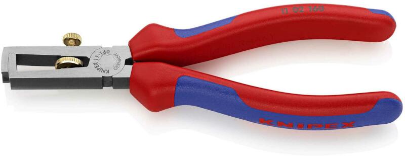 Kábelcsupaszoló fogó Speciális szerszámacél, kovácsolva, olajban edzve, tükrösre polírozott fej, a markolat többkomponensű burkolattal Forma 0: nyitó rugóval Jellemzők: egy, több és finomhuzalos, műanyag vagy gumi szigetelésű vezetékekhez, max. Ø 5,0 mm illetve 10,0 mm2 vezető keresztmetszetig · egyszerűen állítható a recézett csavarral és ellenanyával a kívánt huz