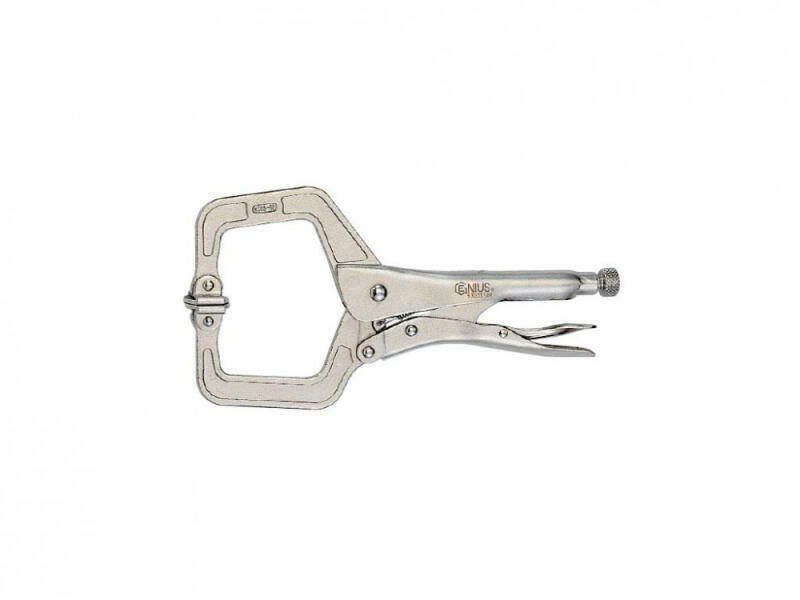 Genius Tools - Canada C-pofájú, önzáró patentfogó (gripp/blitzfogó) forgatható (önbeálló) alátétes pofával. Alkalmazása elsősorban a nagy, terjedelmes munkadarabokhoz ideális. Lakatos patentfogó A patentfogók tárgyak gyors összeszorítására, rögzítésére valók. A csavarral beállított pofatávolságnál a szárak összeszorításával zár a fogó mindaddig, amíg a kö