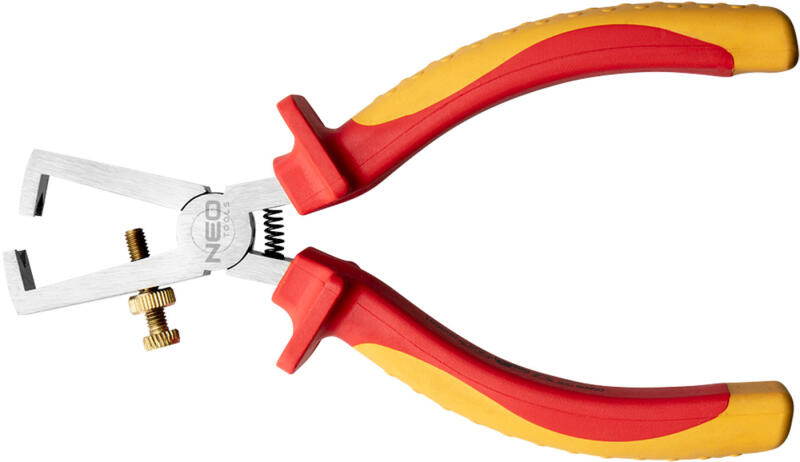 NEO kábelcsupaszoló fogó 1000 V, 160 mm-es Max. 1000 V feszültség alatti használatra minősített. A szabályozási tartomány: 0,5 – 5 mm. A feszítőrugó megkönnyíti vele a munkát. A kiváló minőségű króm-vanádium acél sokéves tartósságot biztosít a fogónak. Az ergonómikus bimateriál markolat növeli a használat komfortját. A szerszám minőségét bizonyítja a TÜV