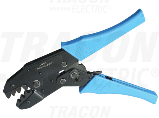 Tracon LY03BR présszerszám szigeteletlen csúszósaruhoz 0,5-6 mm2 Tracon LY03BR présszerszám 0,5-6 mm2 keresztmetszetű csupasz, szigeteletlen saruhoz. A fogó hossza: 230 mm A présszerszám súlya: 600g racsnis mechanizmus, nagy szorítóerő két oldalon szorító préselőpofák Saruzó fogó szigeteletlen rátolható csatlakozó, saru kábelre préselésére, nyomására. Ezeket a csúsz