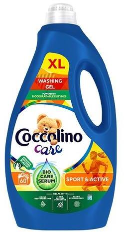 Folyékony mosószer COCCOLINO Care Sport. Kapacitás: 60 mosás. Kiszerelés: 2,4L/flakon.