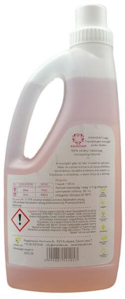 Klórmentes, foszfátmentes, parabén mentes, hipoallergén mosógél fehér és színes kismama- és babaruhákhoz. 1000 ml-es mosógél; Anandam termék babaruhák mosásához.