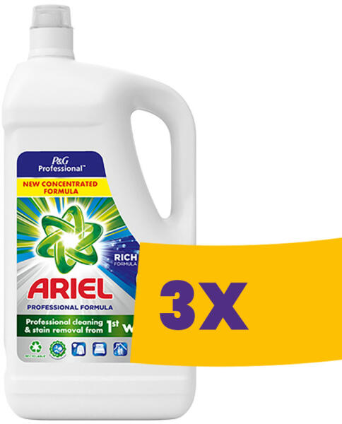 Az Ariel Professional mosógél tökéletesen eltávolítja a foltokat rövid mosási ciklus alatt isSpeciális enzimek védik és lágyítják a pamutszálakat és más típusú szöveteketTiszta, friss és kellemes illatHatékony már 20 °C mosásnál isFoszfátmentes Tökéletesen eltávolítja a foltokat rövid mosási ciklus alatt isSpeciális enzimek védik és lágyítják a pamutszálakat