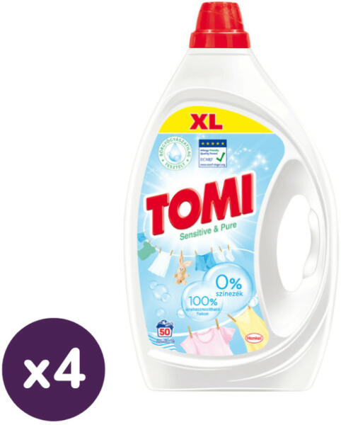 A Tomi Sensitive & Pure folyékony mosószer hatékonyan távolítja el a foltokat a textíliákból, kimondottan az érzékeny bőr számára kifejlesztve. - Hipoallergén parfümmel - 0% színezékkel - Bőrgyógyászatilag tesztelt és ECARF tanúsítvánnyal rendelkezik - 100%-ban újrahasznosítható flakonban.