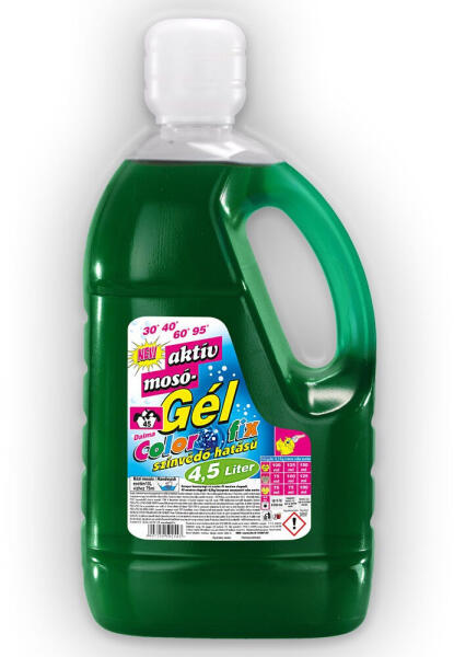 GHS piktogram: Figyelmeztetés: Figyelem Figyelmeztető mondatok: H319 Súlyos szemirritációt okoz. H315 Bőrirritáló hatású Aktív mosógél, színvédő hatással. Kézi és gépi mosásra egyaránt. 30-40-60-95°C használható 4 db/# Mosógél 4500 ml Dalma Aktív Color Fix termék alkalmazásakor ügyeljen a biztonságra! Használat előtt mindig olvassa el a címkét és a használati