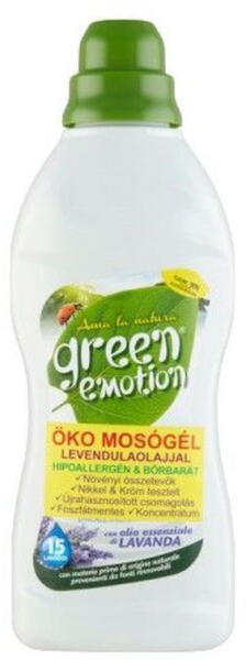 Mosószer koncentrátum gépi és kézi mosáshoz. 750 ml-es mosógél; Green Emotion termék mosáshoz.