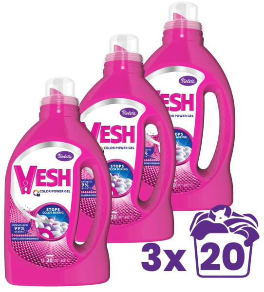 A Violeta Vesh COLOR POWER mosószer a legmakacsabb foltokkal is megbírkózik, akár egyetlen mosás alatt. Advanced Brilliance technológiájának köszönhetően mélyen behatol az anyagba, eltávolítja a legmélyebb szennyeződéseket, legyen szó bármilyen színű ruháról. A mosógél már igen alacsony hőmérsékelen is nagyon hatékony. Tipp: a legjobb eredmény elérése érdekében a