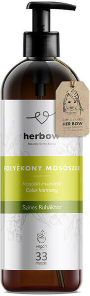 Kimagasló mosóhatás értékes növényi alapanyagokból, szövetkárosodás nélkül. Herbow folyékony mosószerek praktikus, pumpás kiszereléssel, színes ruhákhoz. 12 % mosódió-kivonattal és bio-enzimek felhasználásával. Foszfát-mentes, - klórmentes, biológiailag jól lebomló vegán termékek. Jellemzőkvegán Igen
