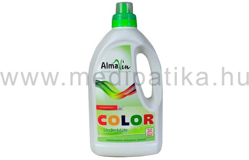Almawin Folyékony Mosószer Color 1500 ml Alapos tisztító hatás mellett kíméletes a színekhez, a textíliához és a bőrhöz. Színes ruha 30°C-tól 60°C-ig történő mosásához, minden vízkeménységi fok mellett. Természetes hársfavirág kivonattal diszkrét, kellemes illatot kölcsönöz a ruháknak. Használata: Alkalmazh ató 30, 40 és 60°C-on színes anyagok mosására. Sely
