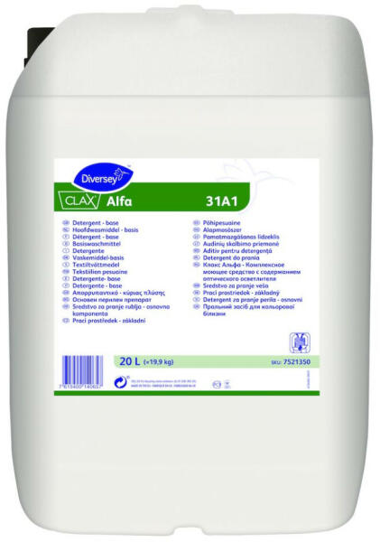 Koncentrált semleges folyékony mosószer A Clax Alfa képviseli a semleges mosószert az alkálikus mosókomponensek mellett. Elsősorban a zsír- és fehérje tartalmú szennyeződések eltávolítását biztosítja minden textíliáról, ideértve a műszálas- és kevert szálas szöveteket is. Egyedi összetételének köszönhetően a legjobb hatást alkálikus mosókomponensekkel kombinál