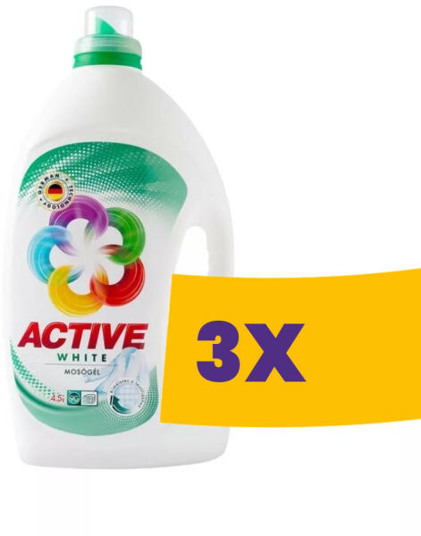 Aktív folyékony mosószer fehér ruhákhoz. Aktív mosógél fehér ruhákhoz. Az Active White mosógél tökéletes választás fehér ruhák, textíliák tisztításához. Kíméletes az anyaggal, így hosszú ideig megőrizheted ruháid hófehér ragyogását és frissességét!