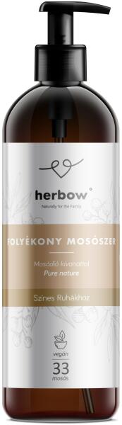 A Herbow Folyékony mosószer színes ruhákhoz - natúr illatban a kíméletes, de mégis hatékony növényi összetevőknek köszönhetően a pamutpólókat, ingeket és enyhén szennyezett zoknikat már 30-40°C fokon tisztítja. Kíméletes eljárással kinyert 12% mosódió-extraktummal és bioenzimekkel készült. Kimagasló mosóhatású, növényi összetevőkkel, szövetkárosodás nélk