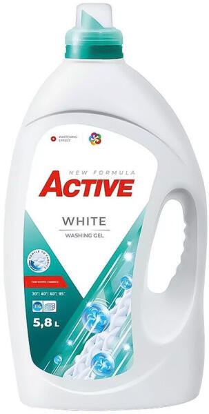 Az ACTIVE MOSÓGÉL WHITE tökéletes mosási eredményt és higiénikus tisztaságot biztosít ruhái számára. A legmakacsabb foltokat is eltávolítja anélkül, hogy kíméletlenül bánna ruháival. Garantálja a hatékony tisztítási teljesítményt, mélyen behatol a szálak közé a tökéletes folteltávolítás érdekében, miközben megőrzi ruháinak frissen mosott érzését. Mindez