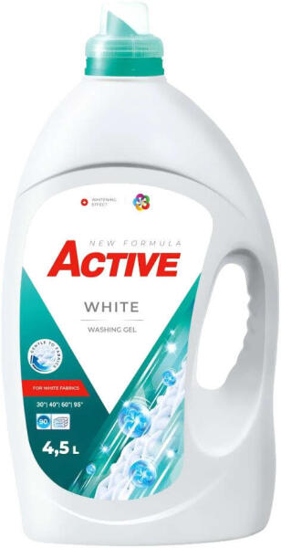Folyékony mosószer fehér ruhákhoz. Active mosógél White (90 mosás) 4,5L - folyékony mosószer fehér ruhákhoz - 90 mosásra elegendő - gazdaságos - kíméletes a ruhákhoz