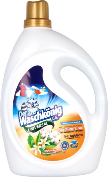 A Der Waschkönig C. G. mosógélek innovatív formulával könnyen oldódnak vízben. Sűrűségüknek és koncentrált összetételüknek köszönhetően nagyon nagy hatékonyságúak – 3 l gél lehetővé teszi akár 100 mosás elvégzését is. Innovatív receptúrájának köszönhetően sikeresen kezelik a szennyeződést, még rövid, gazdaságos mosási programok esetén is. Már 20 °C-