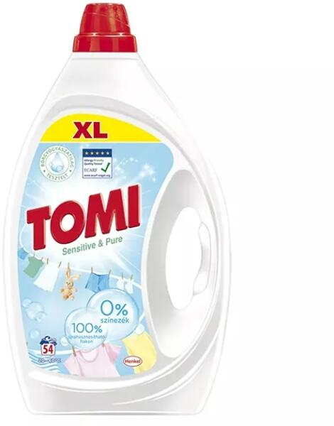 Tomi Sensitive & Pure folyékony mosószer kifejezetten az érzékeny bőr számára kifejlesztve!A Tomi Sensitive & Pure hatékonyan távolítja el a foltokat a textíliákból, kimondottan az érzékeny bőr számára kifejlesztve. - Hipoallergén parfümmel- 0% színezékkel- Bőrgyógyászatilag tesztelt és ECARF tanúsítvánnyal rendelkezik- 100%-ban újrahasznosítható flakonba