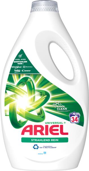 A Whirlpool, Electrolux, Candy és Beko mosógépgyártók által is ajánlott Ariel bemutatja az Ariel Brilliant Clean Universal+ folyékony mosószert, amely már alacsonyabb mosási hőfokon is kimagasló folteltávolítást tesz lehetővé. Különleges COOL CLEAN technológiával készült formuláját kifejezetten alacsony mosási hőfokhoz tervezték. Az Ariel Brilliant Clean Universal+ fol