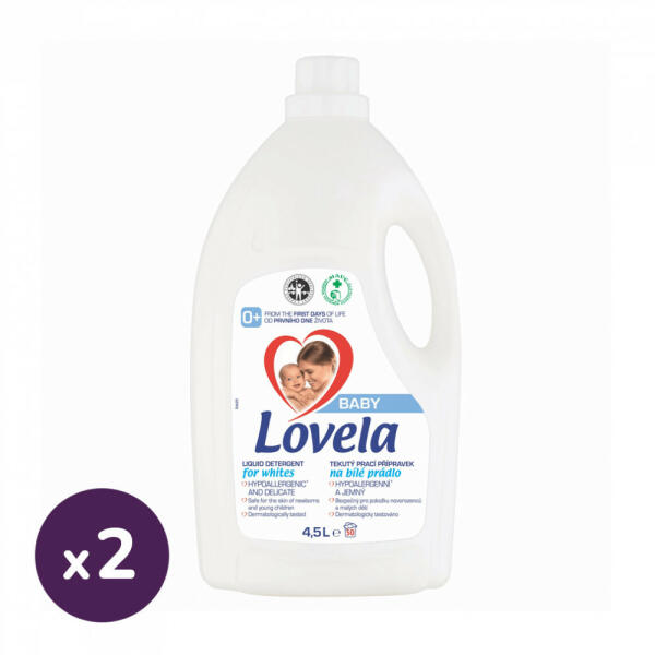 Lovela Baby hipoallergén folyékony mosószer fehér ruhákhoz 2x4,5 liter (100 mosás) Miért érdemes még nektek, Anyukáknak a Lovela Baby termékcsaládot használni? - Klinikailag tesztelt - már az élet első napjától biztonságosan használható - Hipoallergén - a formula a legérzékenyebb bőr igényeihez igazodva lett kialakítva - Hatékonyan eltávolítja a foltokat - Nem tartalm
